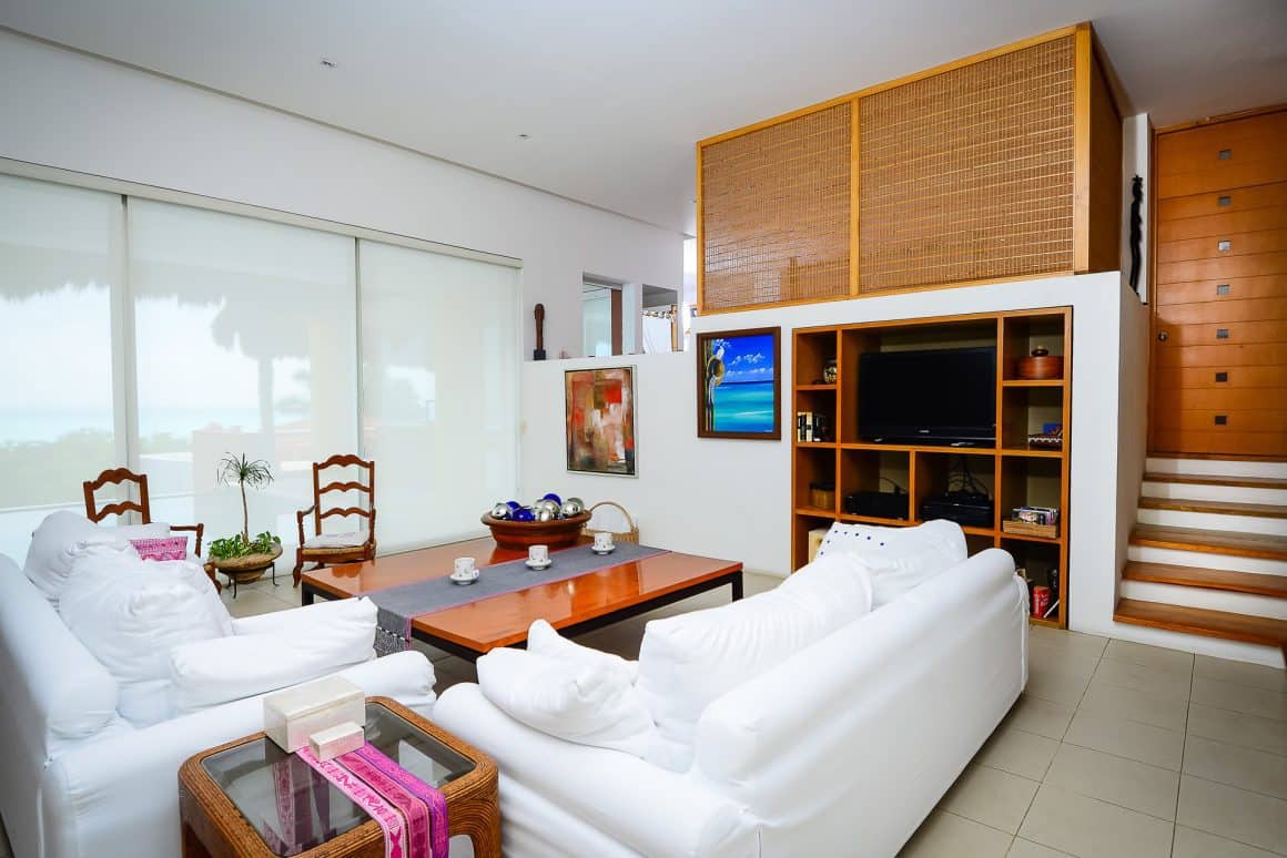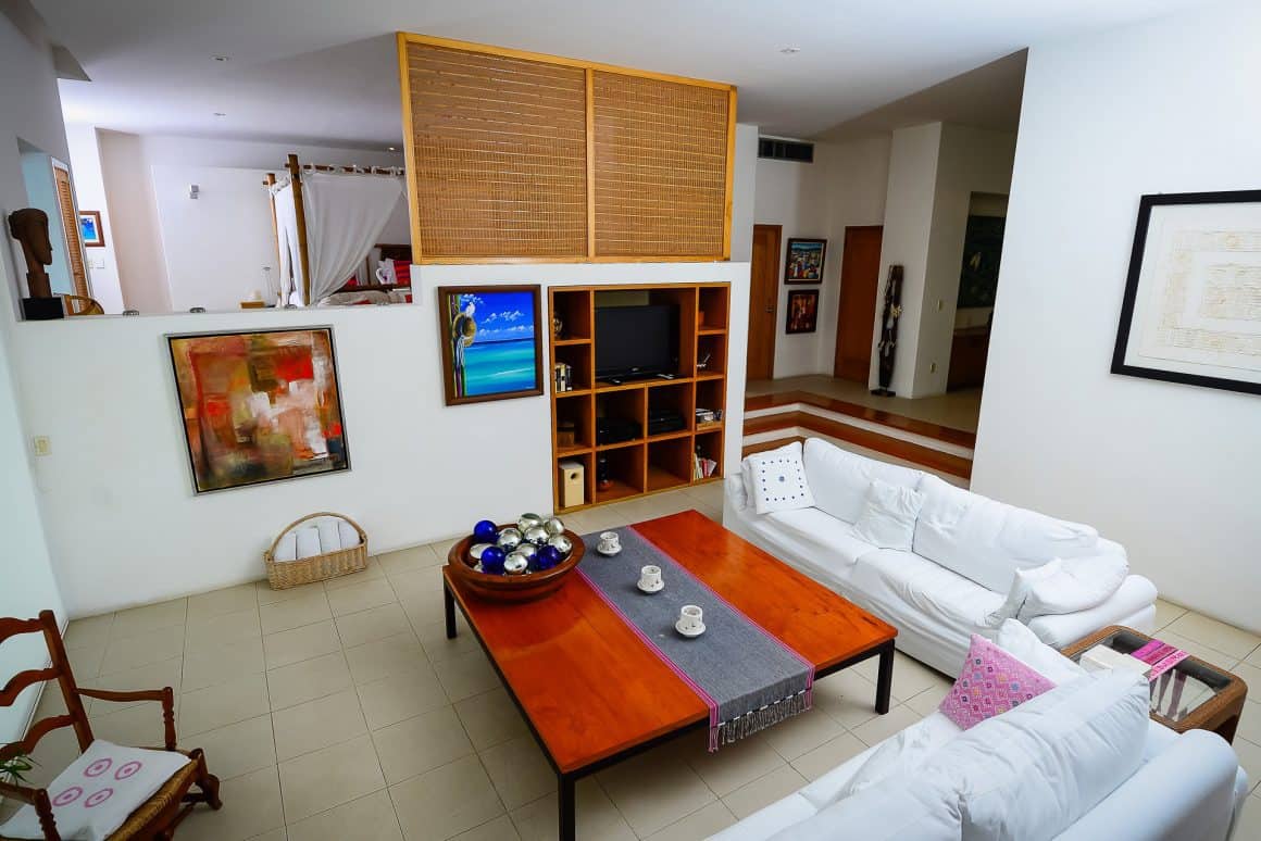 Spacious and bright, our Presidential Suite is designed for comfort and luxury. The suite is beautifully accented with Mexican color and style and includes a king size bed, en-suite bathroom with a shower with spectacular ocean view, 2 central a/c systems, and walk-in closet.